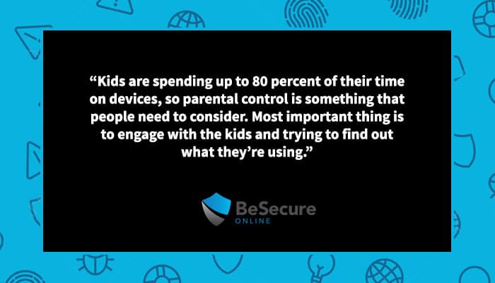 GM: Yeah. I have alluded about Apple and Samsung a few minutes ago but to give them their credit, they do have parental controls. They’re standard in their phones. You can switch them on. They are very basic. You can buy something from a company like us, Be Secure Online and our F-Secure SAFE product with time limits, times when you want people to go on, the type of sites that you want kids to have access to. But you can’t even with the basics have a very basic level of control with your kids. Most important thing is to engage with the kids and trying to find out what they’re using. Usually it’s a lot more than just Facebook and they’re much more likely to be into the likes of Snapchat and things like that.