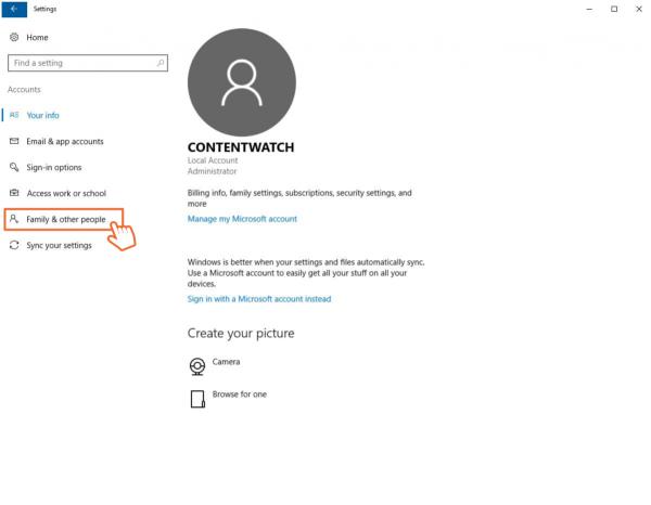 Setting up parental control on Windows 10
